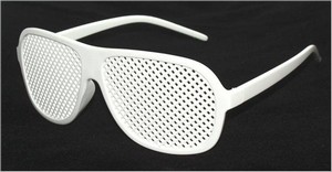 Существуют и «дырчатые» очки, то есть, очки с сеткой. Такие «дырчатые» очки просто уменьшают силу светового пучка. Раньше их назначали для якобы улучшения зрения. Однако по последним данным, клиническая эффективность «дырчатых» очков не была доказана.